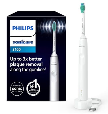 Uno de los modelos que recomiendo es el Philips Sonicare 3100, un cepillo sónico diseñado para ofrecer una limpieza profunda y suave. Con su temporizador de 2 minutos y cabezal adaptado a la forma de los dientes, garantiza una higiene completa en cada uso. Es ideal si buscas eficacia y simplicidad a un precio razonable.